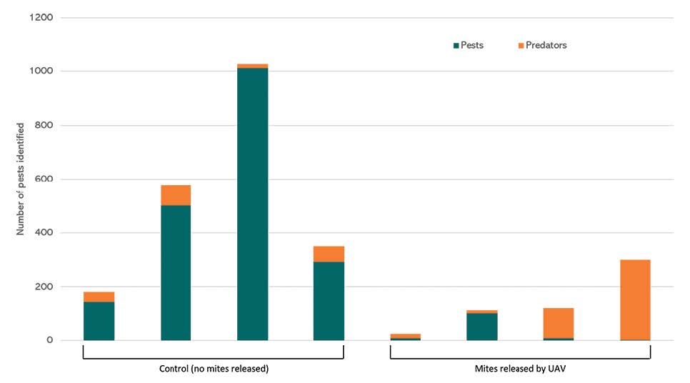 On behalf of NSW Wine Industry Association in the Greater NSW/ACT region, millions of native Australian mites (Typhlodromus doreenae), were released via