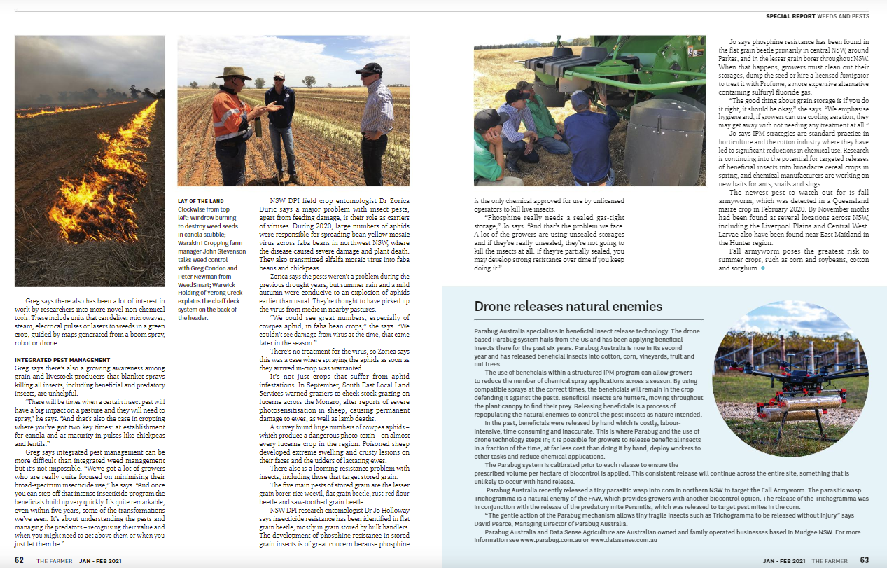 Coverage of the predatory mite (Doreenae)releases in vineyards in Orange and Mudgee as part of the 2 year trial by NSW DPI and Biological Services